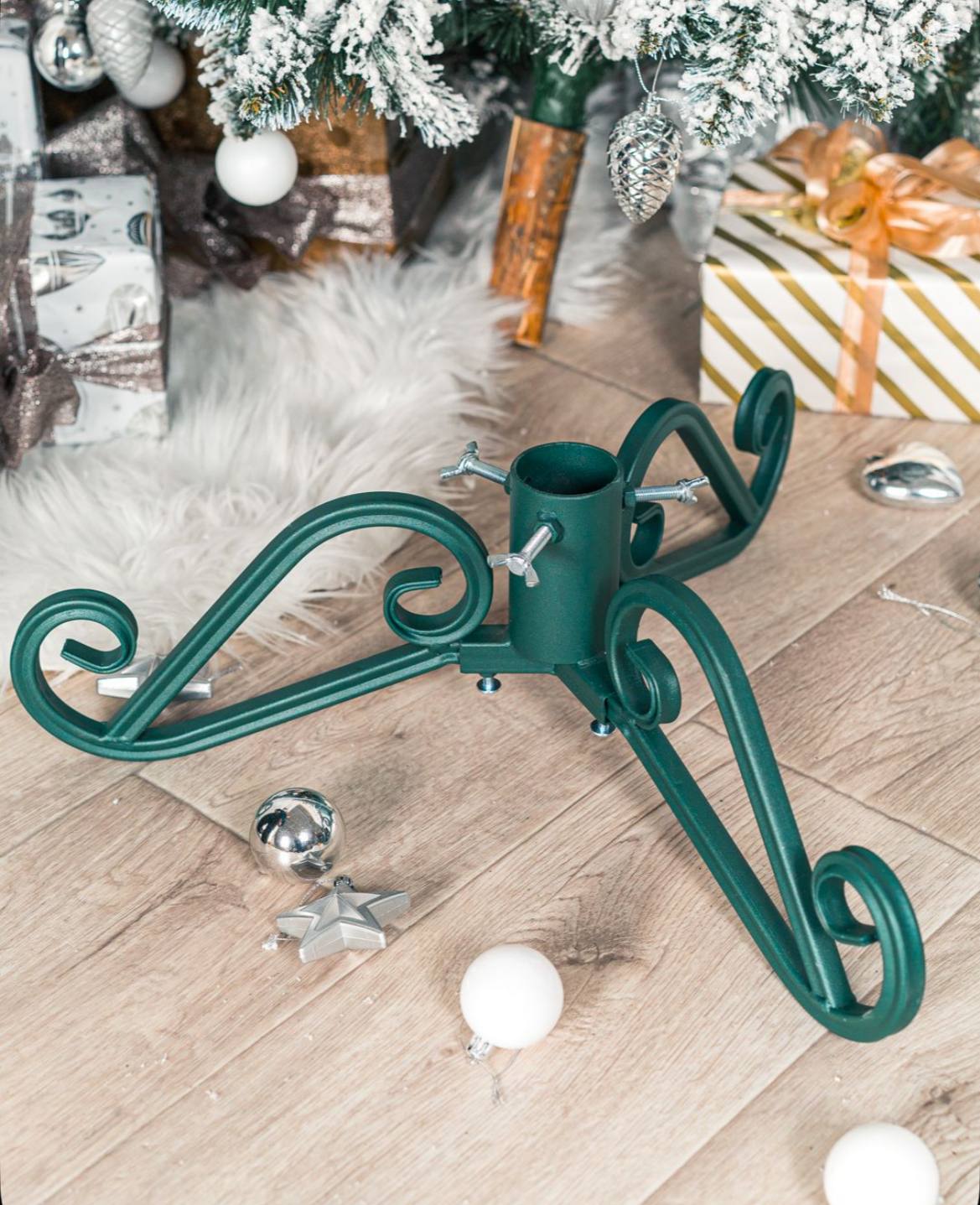 Кованая подставка для елки: стиль и надежность Изящная и прочная подставка станет достойным дополнением вашего праздничного интерьера. Выполненная методом художественной ковки, она сочетает в себе элегантность и прочность. Идеально подойдет для натуральной новогодней красавицы высотой до трех метров. Материал изготовления — высококачественная сталь — обеспечивает устойчивость даже самой пышной елочке. Благодаря искусному дизайну изделие украсит любой интерьер, подчеркнув вашу индивидуальность и вкус. Простота сборки позволит быстро подготовить место для главного символа Нового года